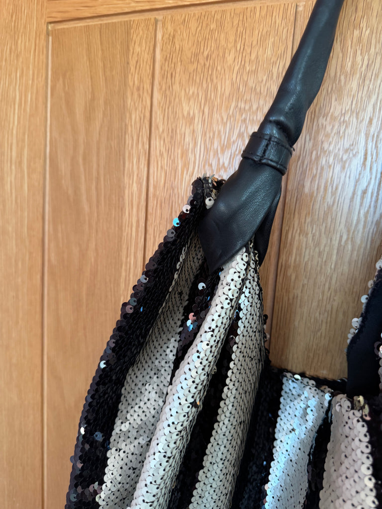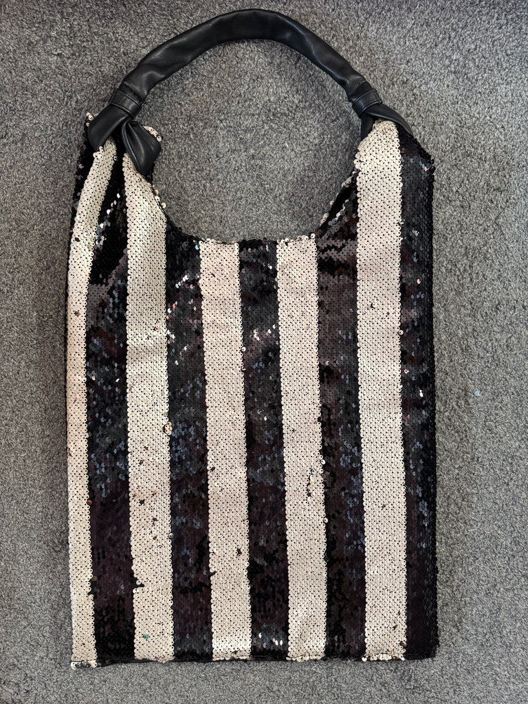 LARGE BLACK AND SILVER SEQUINNED STRIPES BAG