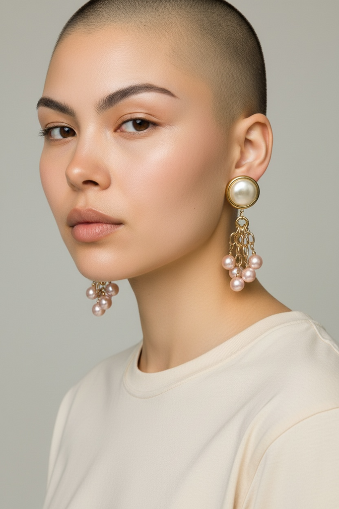 1980s PAIR OF CLIP ON PEARL EARRINGS WITH SHIMMER PASTEL PINK BEADS
