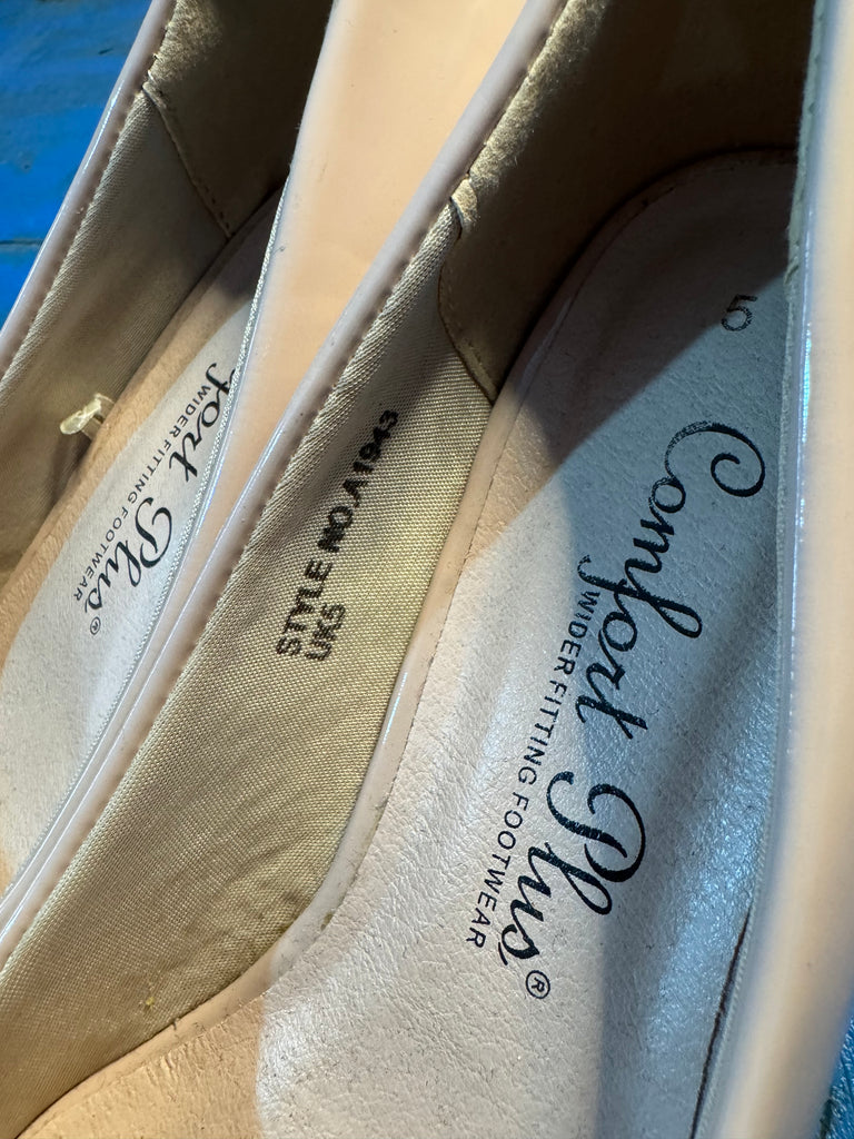This is a pair of beige patent lower heeled shoes owned by UK actor, singer, writer and TV presenter Toyah Willcox.