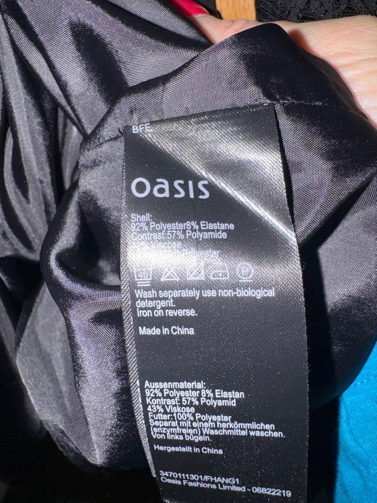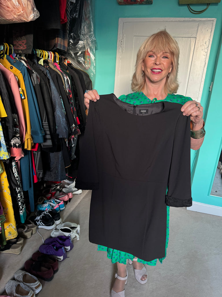 This is a Y2K vintage Oasis dress in a UK 10 that belonged to singer and actor Toyah Willcox. It has lace trimmings on the cuffs.