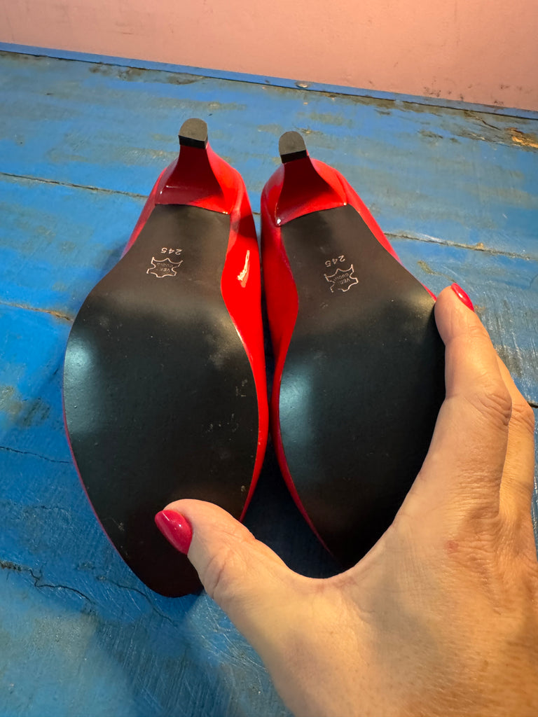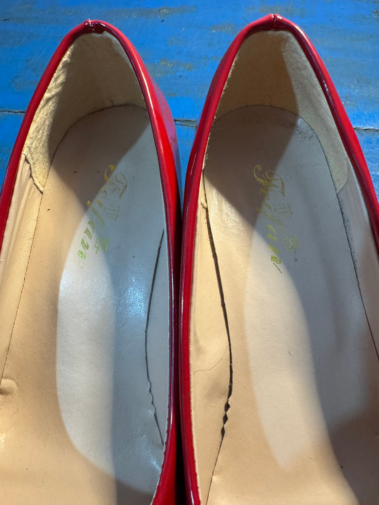 This is a pair of red patent shoes owned by UK actor, singer, writer and TV presenter Toyah Willcox.