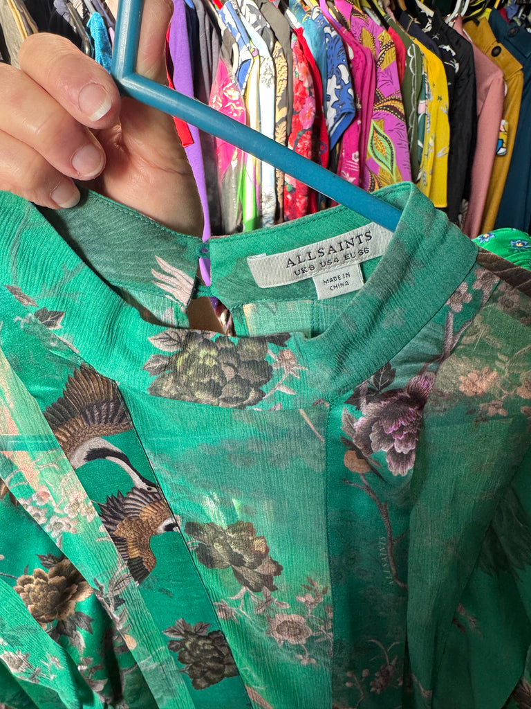 TOYAH ALL SAINTS FLEUR AMARE GREEN SILK MIX DRESS