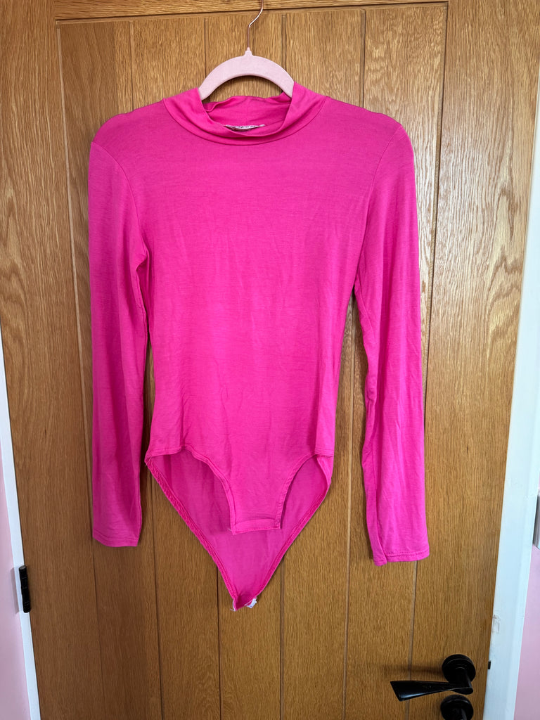 This is a hot pink bodysuit from the Eighties that was owned and worn by UK musician and actor Toyah Willcox.