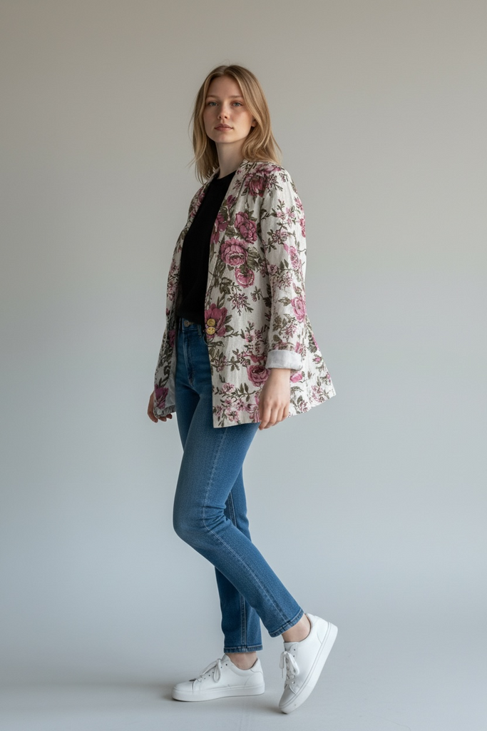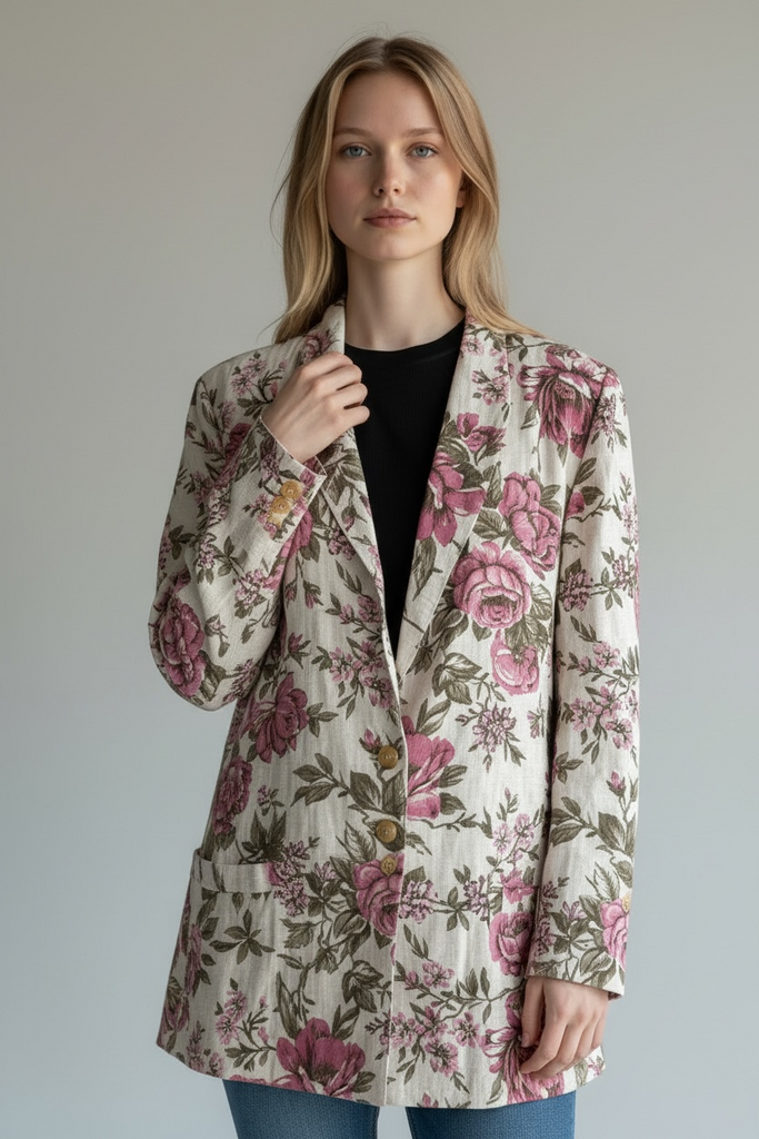 VINTAGE CHOISE PINK AND GREEN FLORAL COTTON JACKET